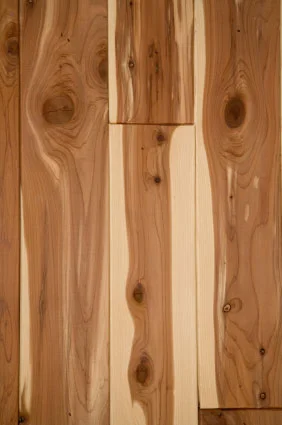 Knotty Hickory varies widely in color from white sapwood to dark brown heartwood. A “rugged-rustic” appearance.